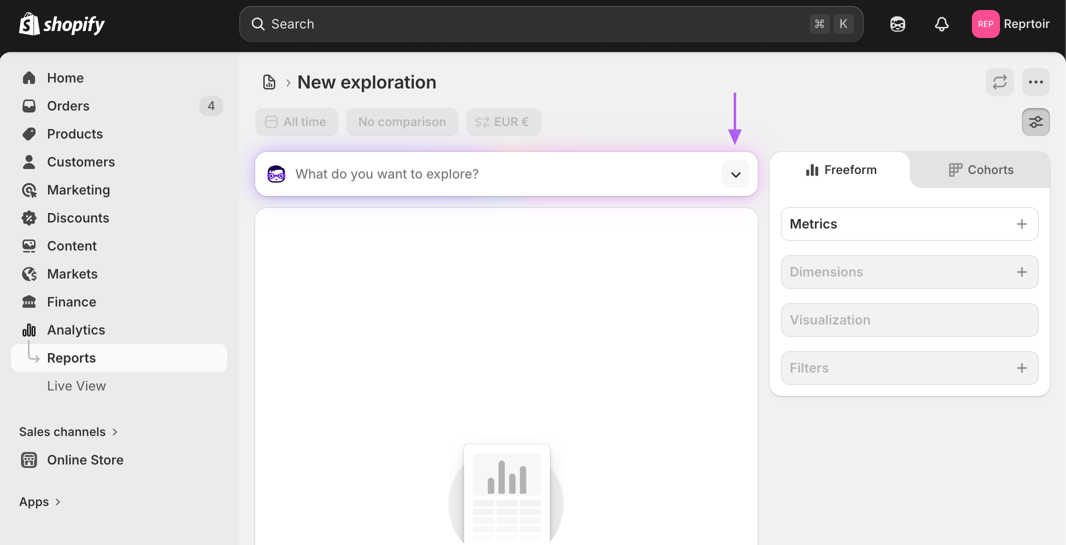 - Click the icon on the right side of the “What do you want to explore?” field.