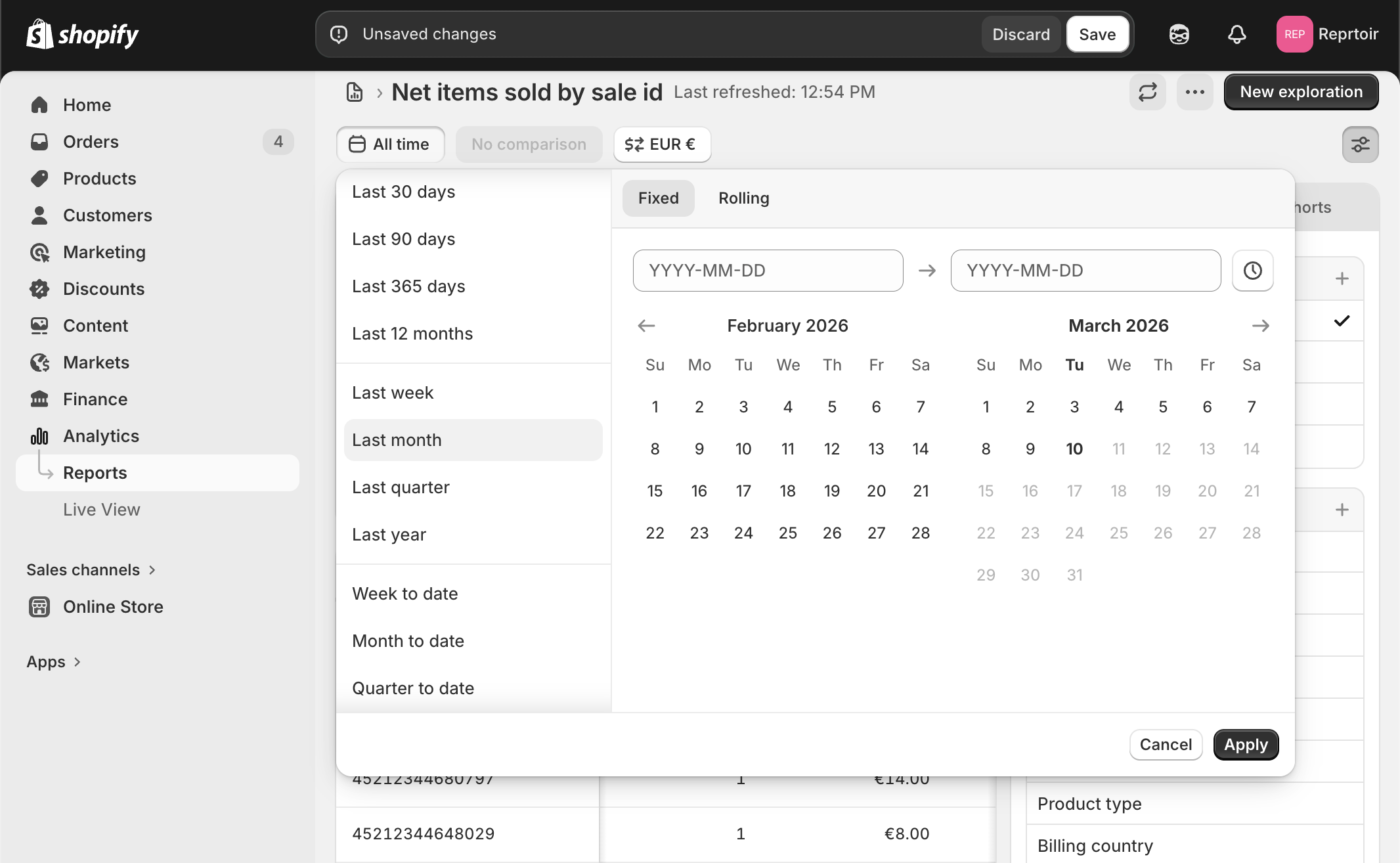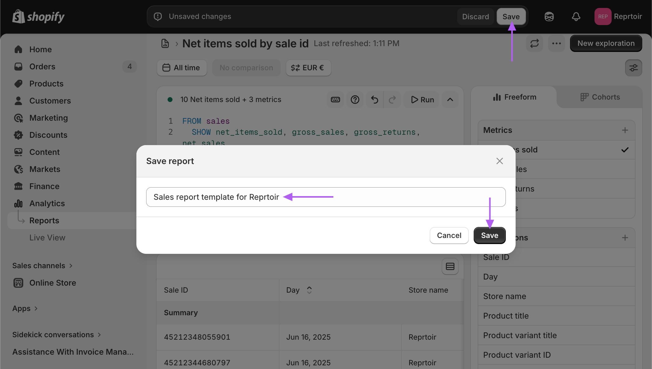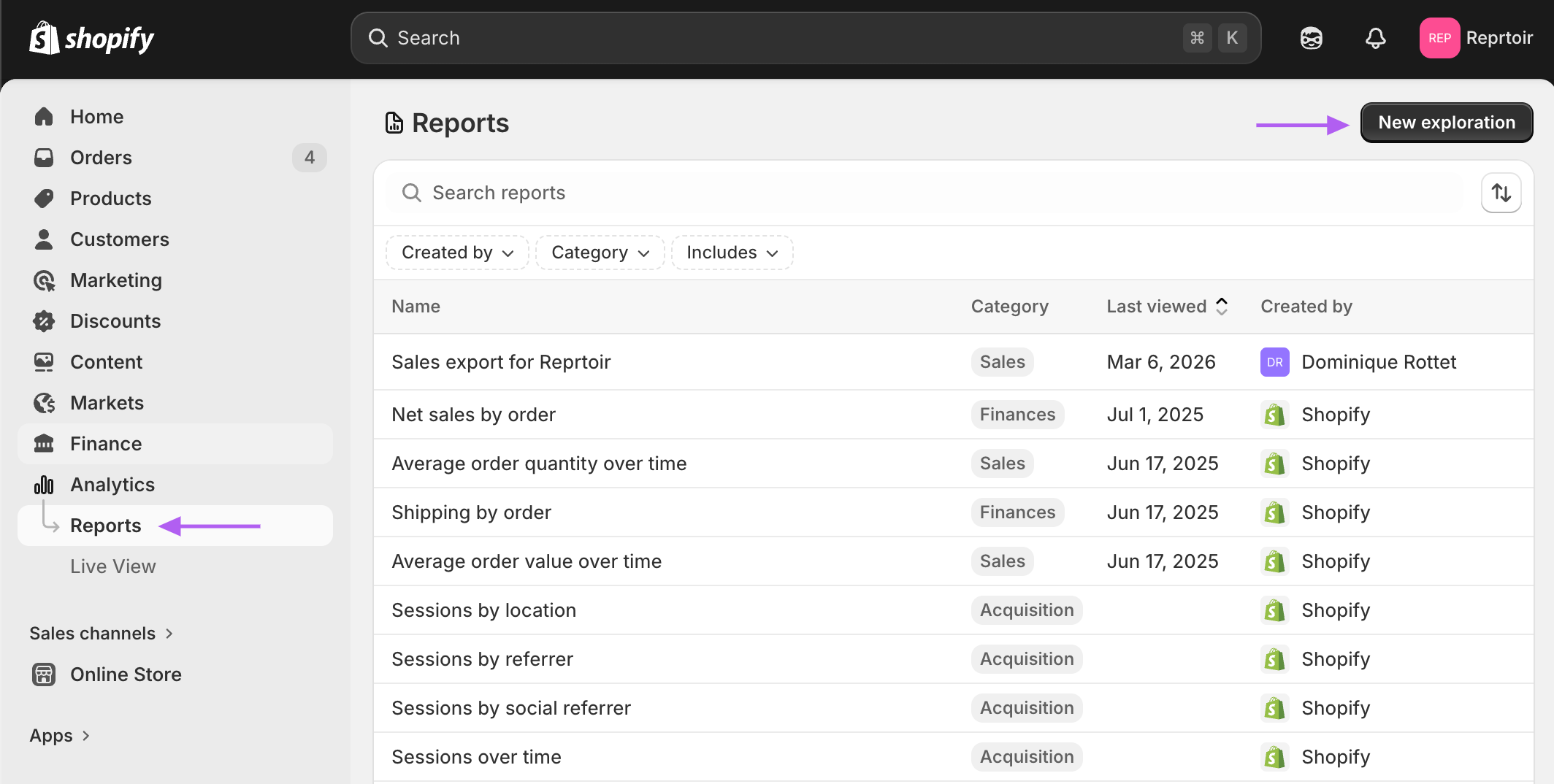 Importing Shopify Sales into Reprtoir