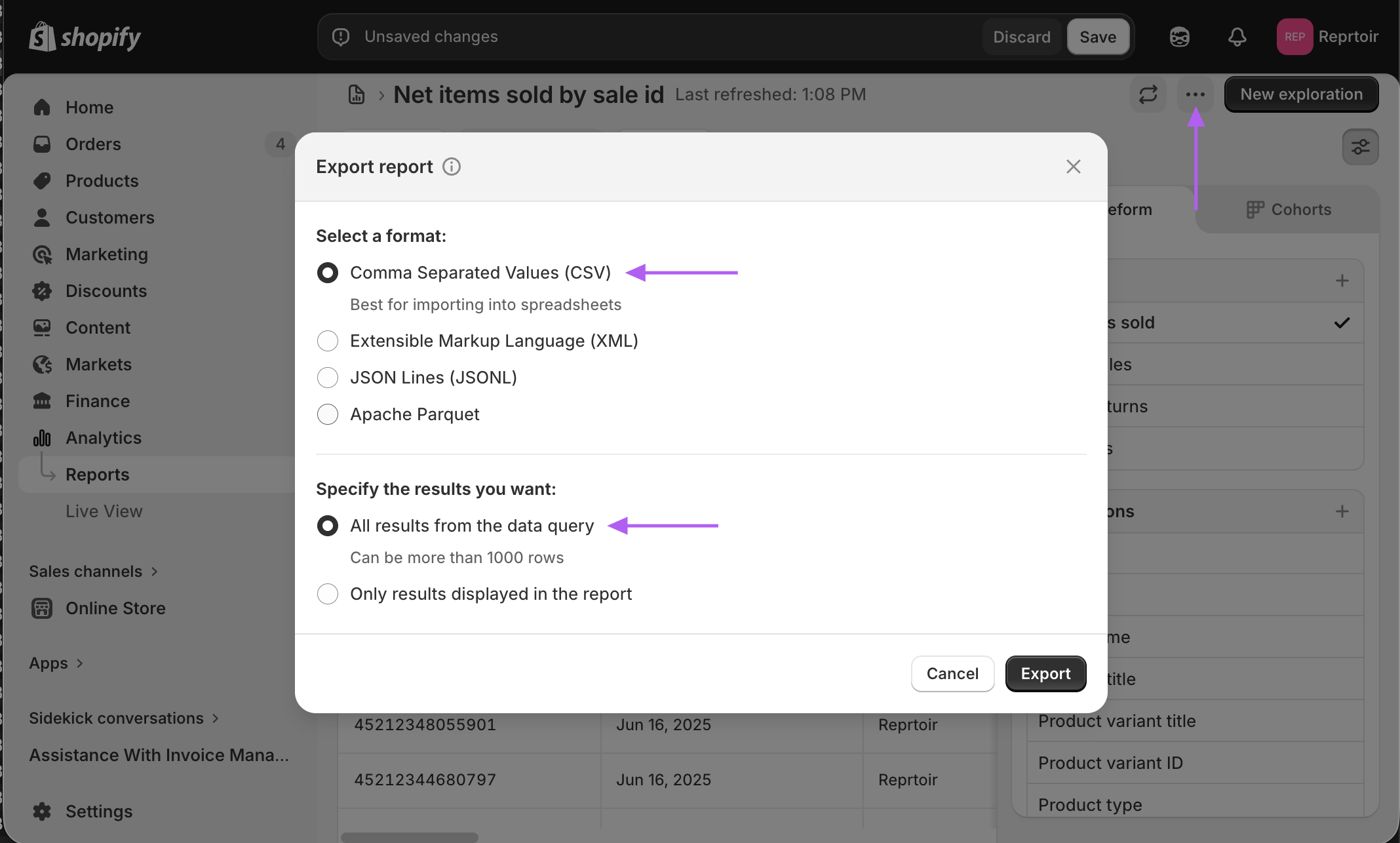 Exporting Sales from Shopify